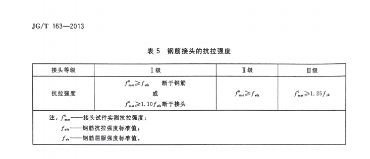 對(duì)于冷擠壓套筒的抗拉強(qiáng)度JG/T163-2013有明確規(guī)定的(看下圖)